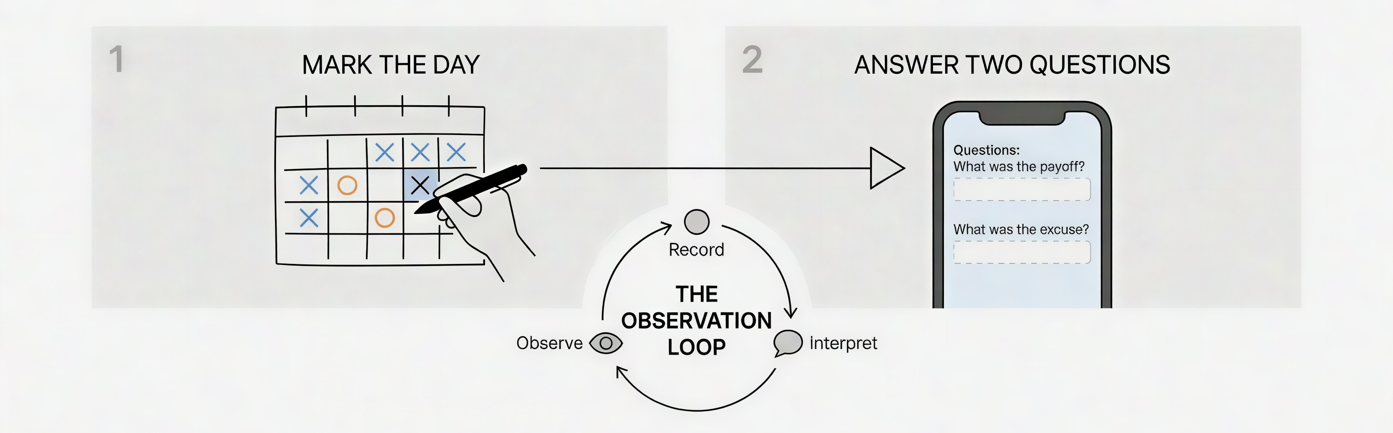 If the user waits until much later to think about the day, memory starts editing what happened. The breach gets softened, the trigger gets blurred, and the bargain behind the behavior gets harder to see. Marking the day close to when it happened preserves a cleaner record. That is the same basic reason ecological momentary assessment became useful in substance-use research: it captures experience closer to the event, before memory reshapes it [4].